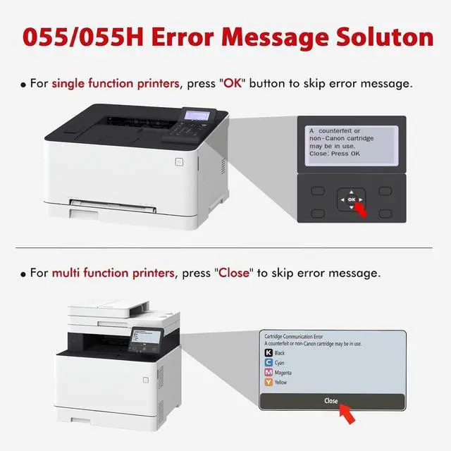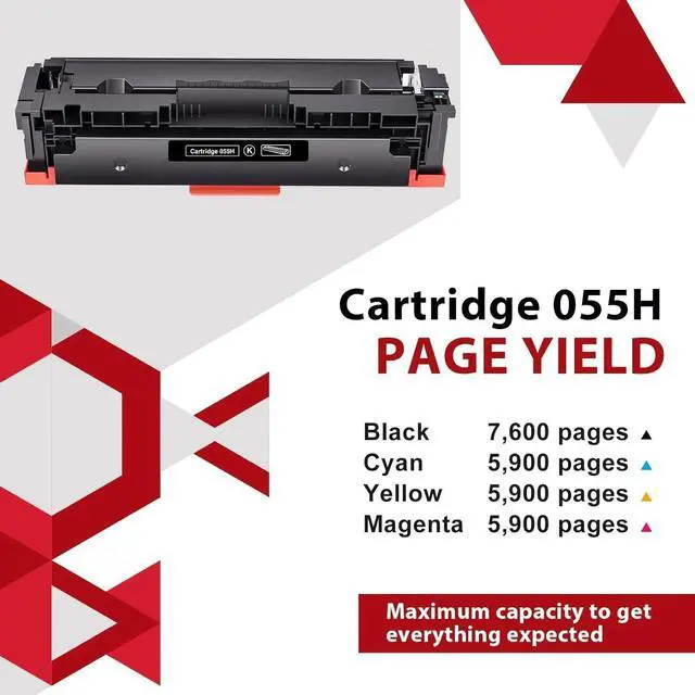 Excellent Performance: The High Yield 055H toner cartridge set deliver superior printing results with vivid colors and clear prints