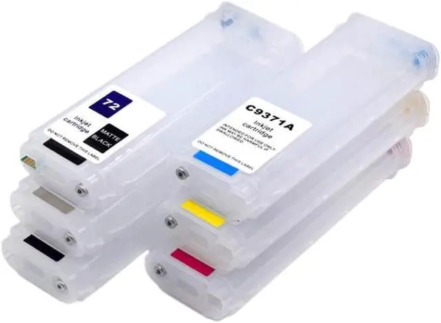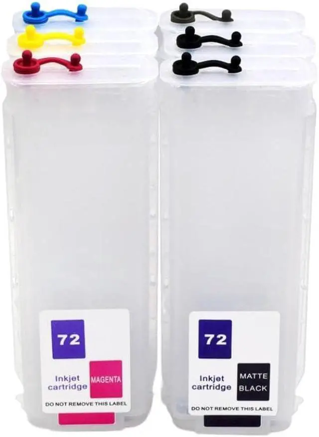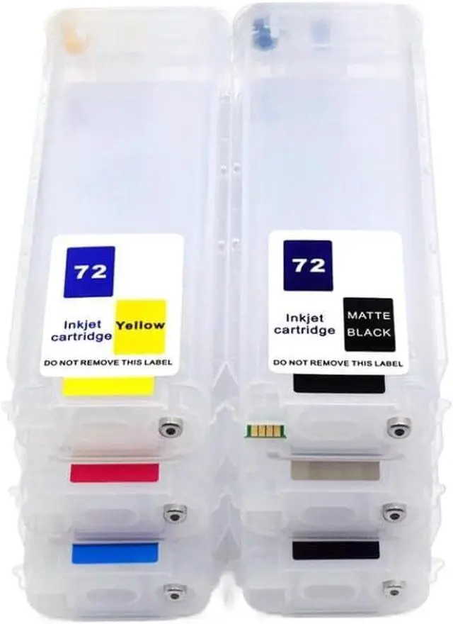 72 Refillable Ink Cartridge With ARC Chip For Designjet T610 T620 T770 T790 T795 T790PS 72 T1100 1200 T2300 T1120 Printers Set of 72 empty refillable ink cartridges with ARC chip Volume: 280ML per cartridge Colors: PK, MK, GY, C, M, Y (6 colors) Chip: Includes ARC chip for MK cartridge with tiny chip decryption card; other color cartridges do not require chips When the MK cartridge is installed, the printer recognizes all six color cartridges automatically Compatible with Designjet T610, T620, T770, T790, T795, T790PS, T1100, T1200, T1300, T2300, T1120 printers Supports both dye-based and pigment inks Cartridges are empty and refillable Designed for use with MBK Master chip for black ink functionality