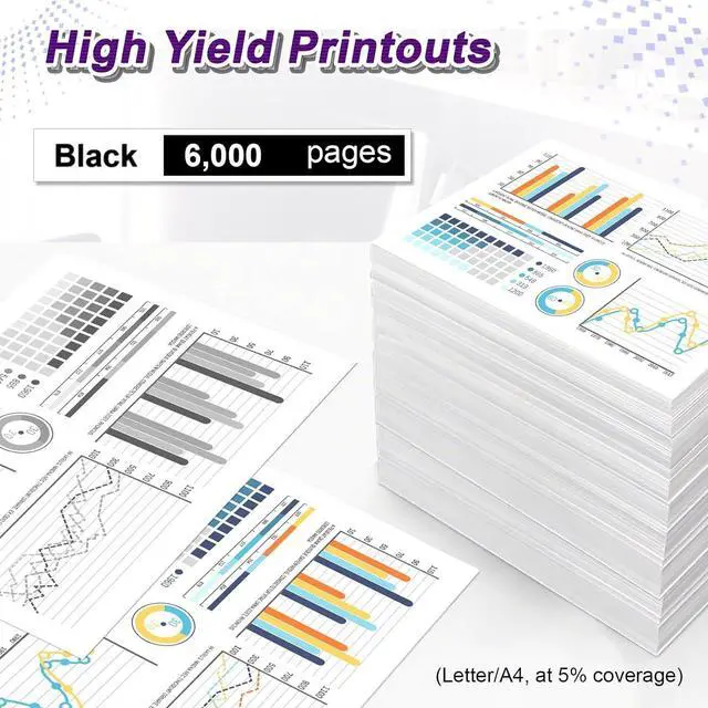 High yield: With a high output of 6,000 pages, our toner cartridges reduces the frequency of cartridge replacements, saving you time and money in the long run, and is cost-effective, with five percent coverage