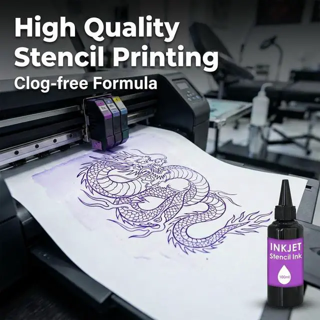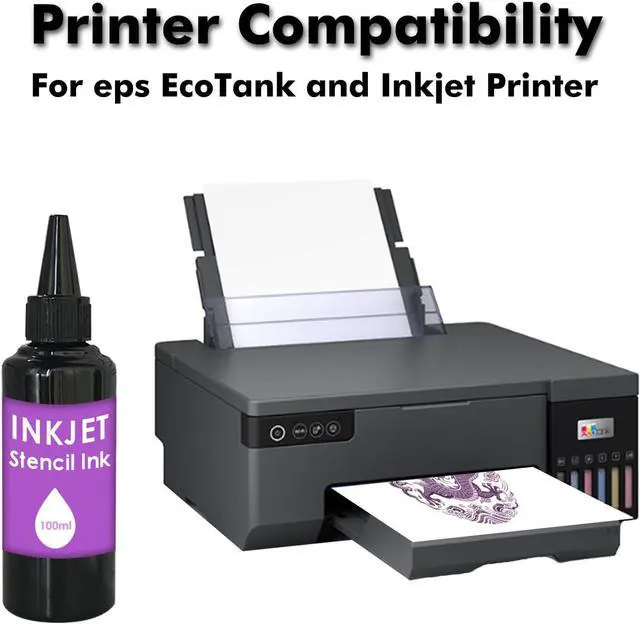 Optimized for EcoTank Inkjet Printers Specifically formulated for seamless compatibility with Epson EcoTank and other inkjet printers. The precision-filtered ink ensures a smooth, consistent flow without clogging printheads. With a generous 100ML capacity, you can print thousands of stencils, making it the ultimate high-efficiency choice for busy tattoo studios.