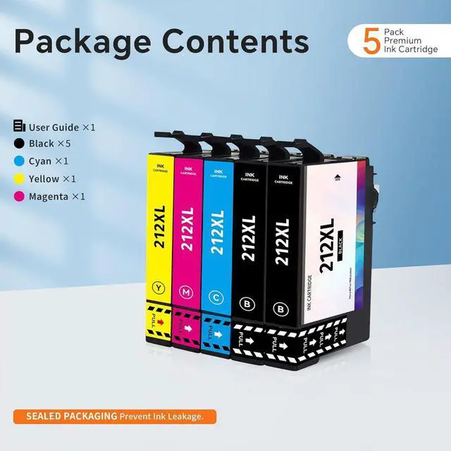 remanufactured for 212XL Ink Cartridge Package Included: 2 x replacement for 212XL Black ink, 1 x replacement for 212XL Cyan ink, 1 x replacement for 212XL Yellow ink, 1 x replacement for 212XL Magenta ink