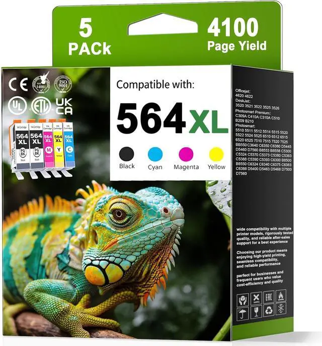 Product Name:564XL Black & Color Combo Replacement Ink Cartridge Set (2 x Black 564XL, 1 x Cyan 564XL, 1 x Magenta 564XL, 1 x Yellow 564XL)