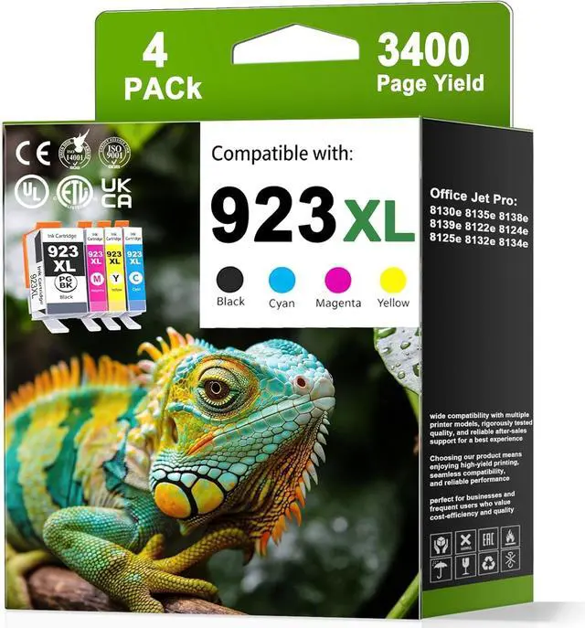 Product Name: 923XL Black & Color Combo Replacement Ink Cartridge Set (1 x Black 923XL, 1 x Cyan 923XL, 1 x Magenta 923XL, 1 x Yellow 923XL)