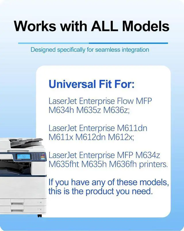 Compatibility & Precision Fit: Engineered to seamlessly with HP LaserJet Enterprise Flow MFP M634h M635z M636z; LaserJet Enterprise M611dn M611x M612dn M612x; LaserJet Enterprise MFP M634z M635fht M635h M636fh printers.