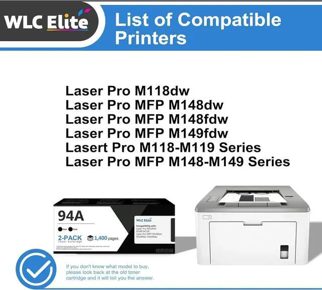 What's in the box? 2 Pack WLCelite 94A CF294A toner cartridge replacement for hp 94A CF294A toner cartridge