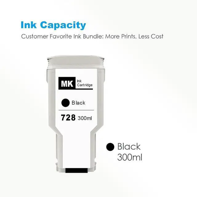 Cartridge Capacity: 300 ml per Black 728XL Ink cartridge