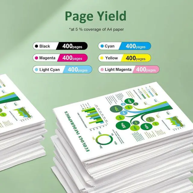 Page Yield: 400 pages per black t048 ink cartridge; 400 pages per color t048 48 ink cartridge at 5% coverage (Letter A4).