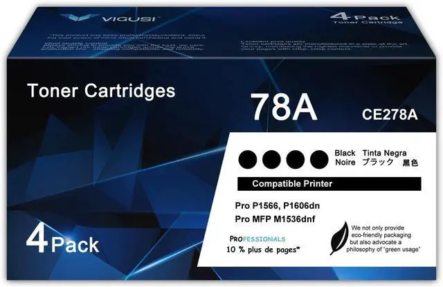Package Contents: 4 Pack 78A CE278A High Yield Toner Cartridge Replacement for HP 78A CE278A Black Toner Cartridge