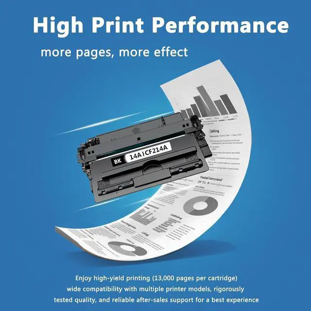 High Page Yield: Up to 13,000 pages per 14A CF214A Black toner cartridge at 5% coverage (Letter/A4) for 14A Black Toner Cartridge