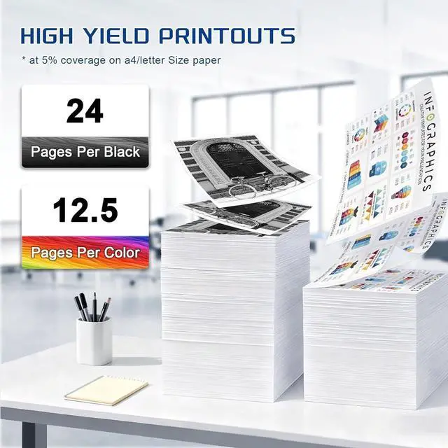 Printing Quality: Our ink cartridges use premium ink that produces crisp, laser-sharp text and vibrant colors. Our ink is highly resistant to fading and smudging, making it ideal for important documents and cherished photos you want to last