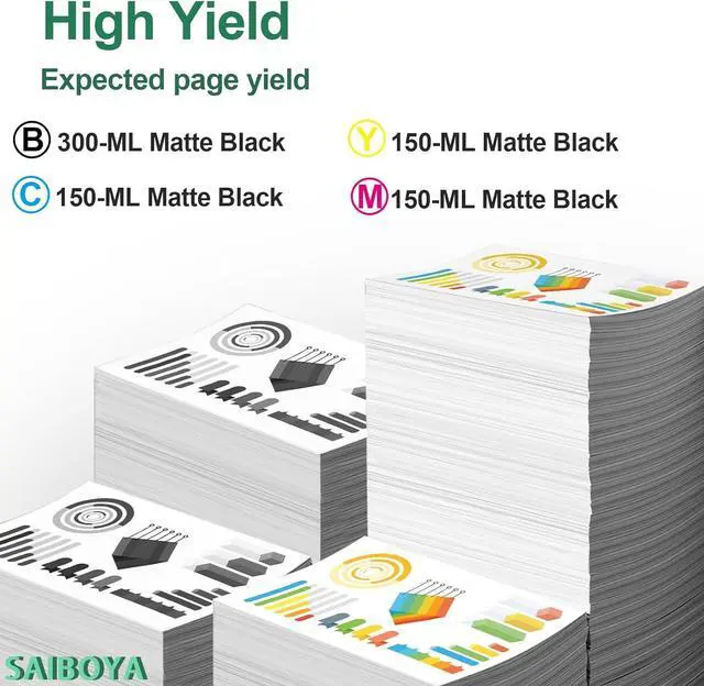 High Page yield: 300ml Matte Black, 130ml Cyan/Magenta/Yellow