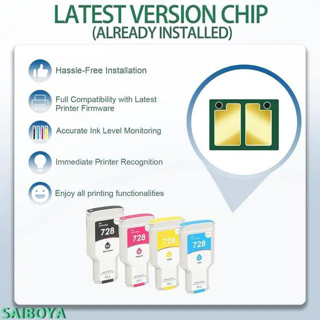 Premium Quality: This 728 Ink Cartridge provides the most vivid intense colors, rich colors, can make the pattern more realistic and interesting. Extremely stable, does not appear cracking and fading. Don't worry about clogging, make printing smoother