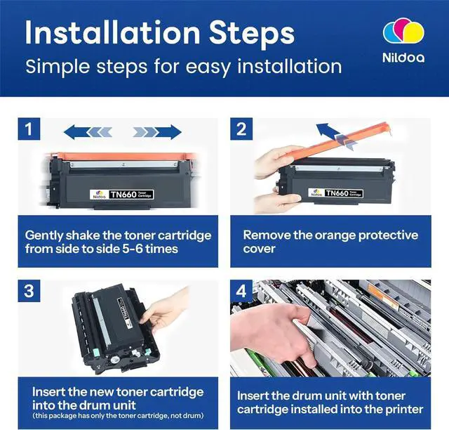 Package Contents: Nildoa 1 Pack TN-660 Toner Cartridge Replacement for Brother TN660 TN-660 Toner Cartridge High Yield Black