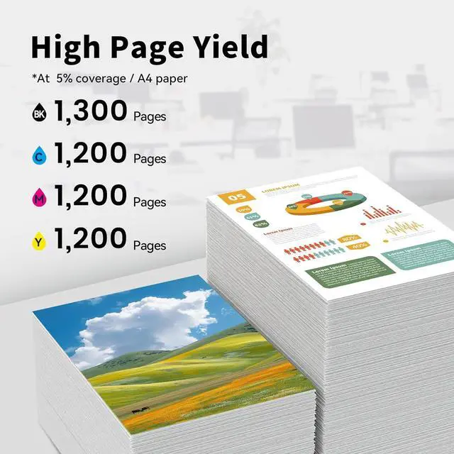 Page Yield: 075 Black toner is 1,300 pages, color is 1,200 pages per cartridge at 5% coverage
