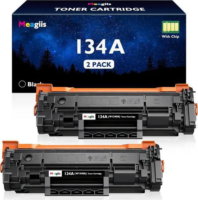 Package Contents: 2-Pack of 134A Black Toner Cartridge replacement for HP 134A W1340A toner cartridges with chip