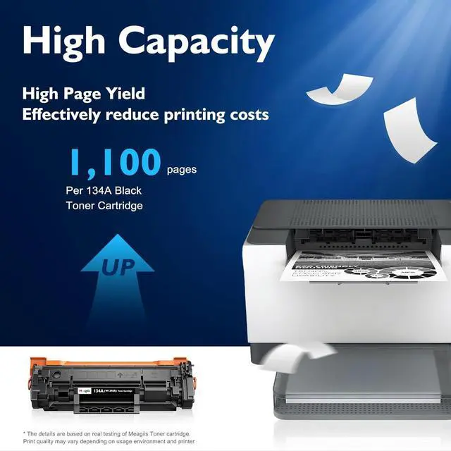 High Page Yield: 1,100 pages per 134A black toner (Letter/A4, at 5% coverage), 2,200 pages in total, ideal for users with high-volume printing needs and reducing frequent replacement