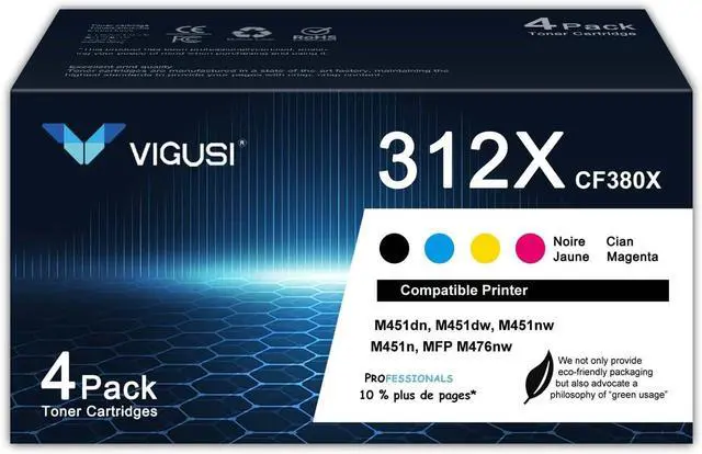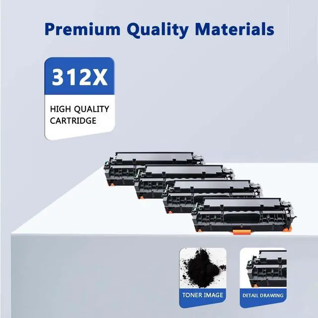 Package Contents: 1 Black 312X|CF380X, 1 Cyan 312X|CF381X, 1 Magenta 312X|CF383X, and 1 Yellow 312X|CF382X toner cartridges