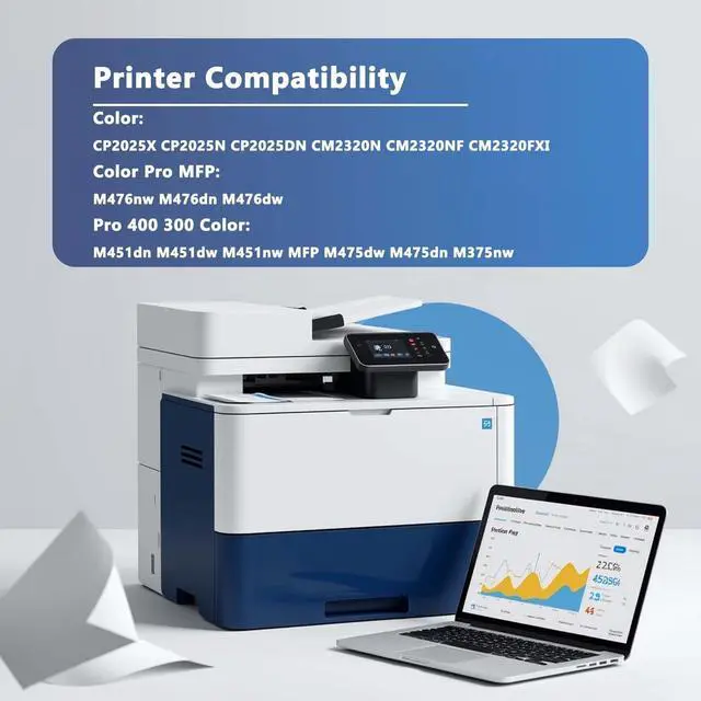 Compatible Printers: Color Pro MFP M476nw M476dn M476dw Pro 400 300 Color M451dn M451dw M451nw MFP M475dw M475dn M375nw Color CP2025X CP2025N CP2025DN CM2320N CM2320NF CM2320FXI MFP Printer