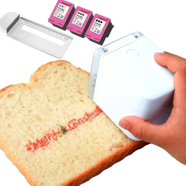HIGH-RESOLUTION, MULTI-MATERIAL PRINTING: With a 1200dpi print head and 14.4mm print height, this portable handheld cake printer delivers sharp, precise images on royal icing cookies, macarons, cakes, chocolate, and frothy drinks. Includes 1 color, 1 black, and 1 brown edible ink cartridges