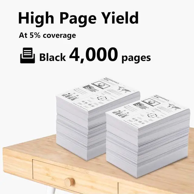 High Page Yiled: Up to 4,000 pages Black per compatible 15X Toner Cartridge at 5% coverage on Letter/A4