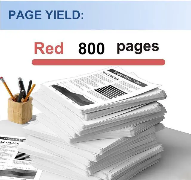 HIGH PAGE YIELD: Red 800 pages (5% coverage on A4 paper)