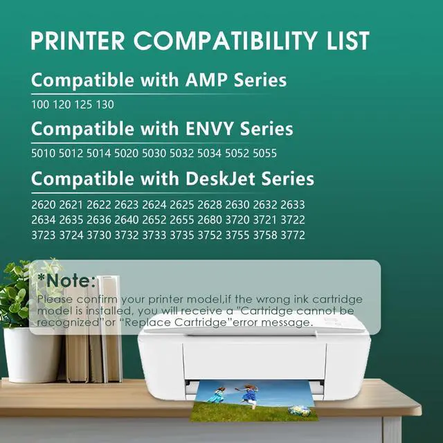 Compatible for HP Deskjet 2600 series: Deskjet 2655, 2652, 2622, 2636, 2635, 2634, 2633, 2632, 2630, 2628, 2625, 2624, 2623, 2621, 2620, 2640, 2680; AMP Series: AMP 100, AMP 105, AMP 120, AMP 125, AMP 130