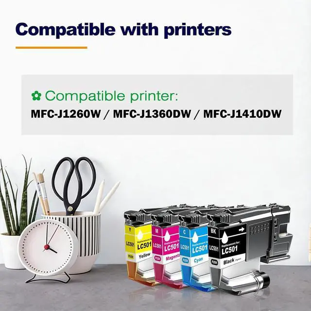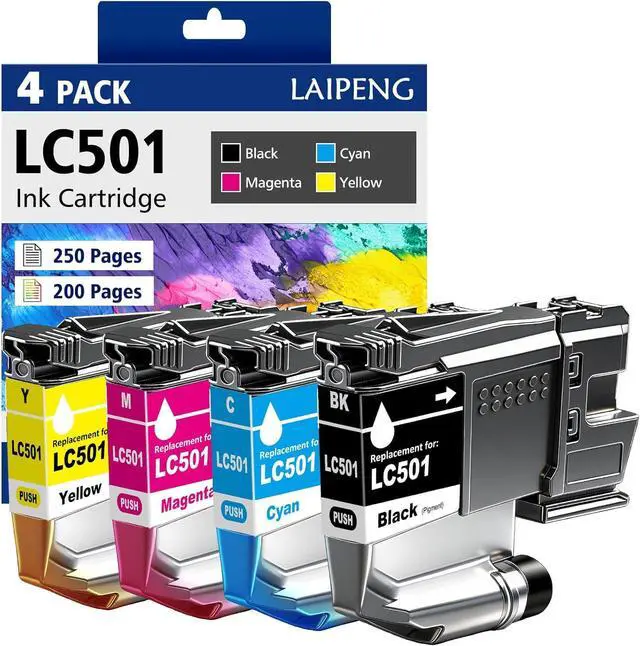 Package Contents - - 4 Color Multipack (Including 1 * LC-501BK Black, 1 * LC-501C Cyan, LC-501M Magenta, LC-501Y Yellow).