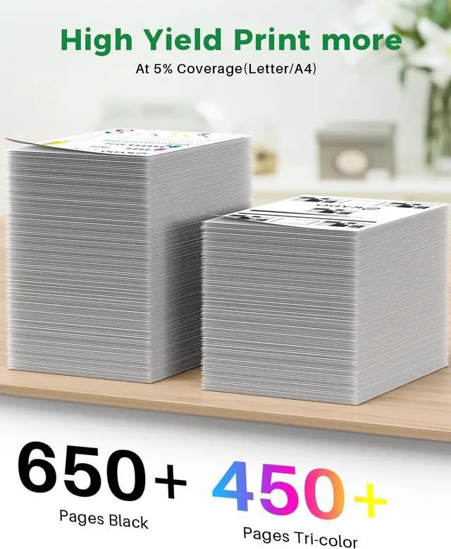 62XL Print More: Up to Higher Yield 700 Pages per 62XL Black ink cartridge & 450 pages per 62XL Tricolor ink cartridge