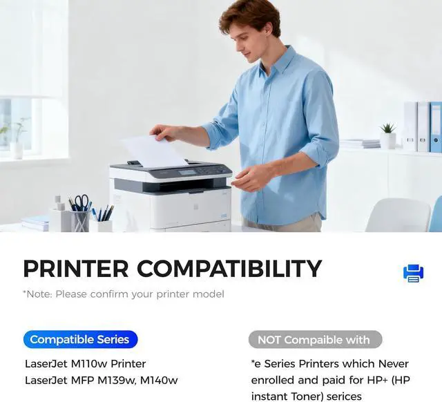 Important Compatibility Note (With Chip): Not compatible with HP LaserJet M110we, M139we, M140we, or any HP+ / e-Series printers. INKBAY 141A Black Toner is designed only for standard HP LaserJet models and will not work with HP+ subscription devices.
