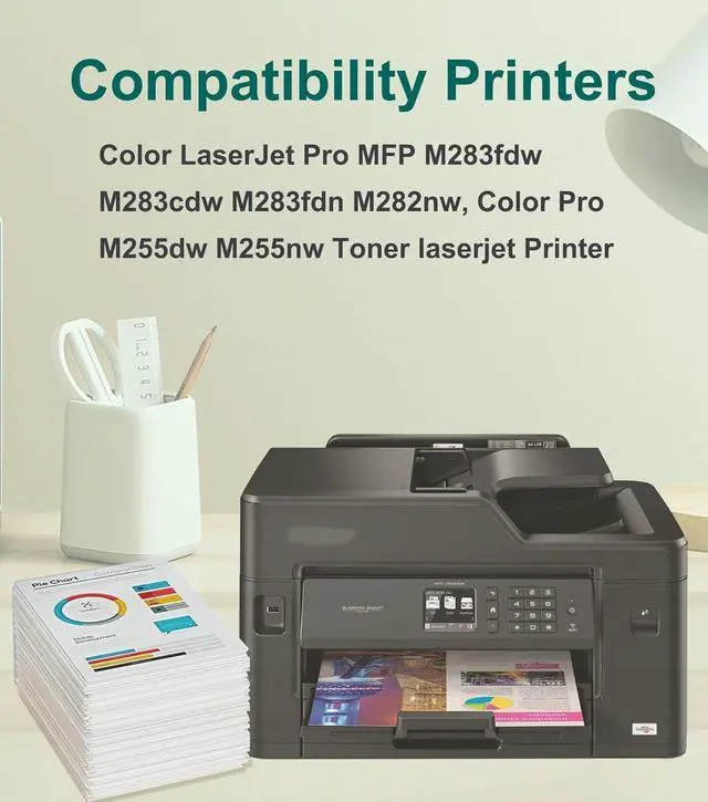 Printer Compatibility: : Compatible with HP Color LaserJet Pro MFP M283fdw, Color LaserJet Pro MFP M283cdw, Color LaserJet Pro MFP M283fdn, Color LaserJet Pro MFP M282nw, Color LaserJet Pro M255dw, Color LaserJet Pro M255nw, M283 M282 M255 Series Printers