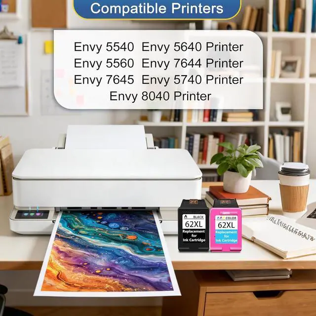 Included Items: 1 x 62XL Black Ink Cartridge, 1 x 62XL Tri-color Ink Cartridge