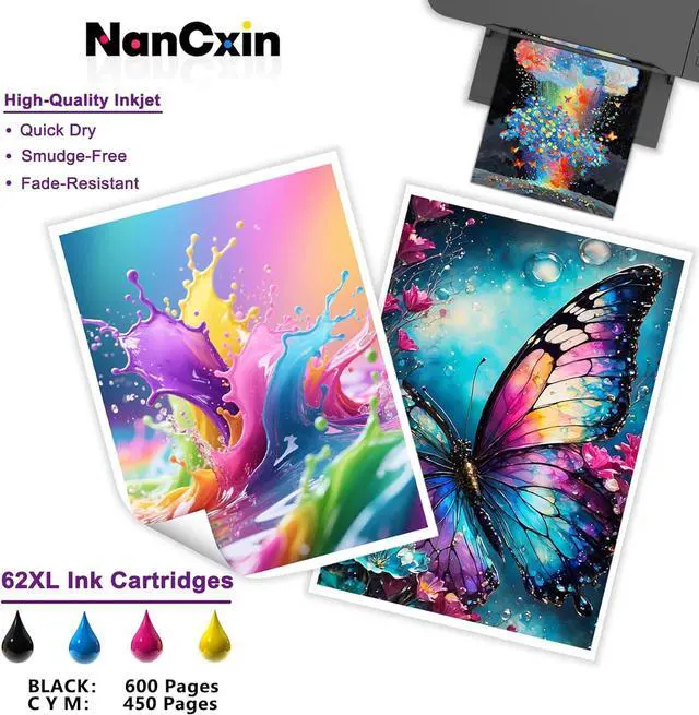 High Page Yield: 600 pages per 62XL black ink cartridge and 450 pages per 62XL tri-color ink cartridge