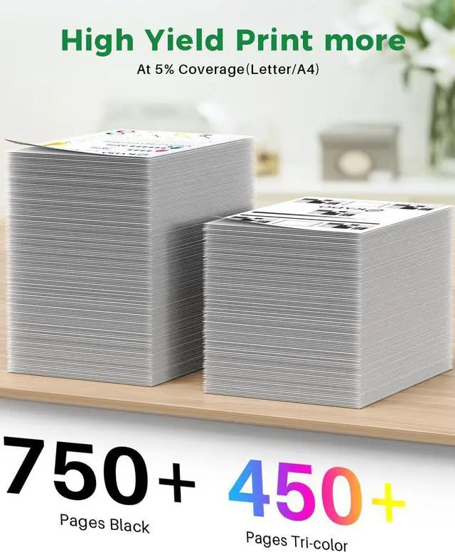 67XL Print More: 750 Pages for 67xl ink cartridges black and 450 Pages for 67xl ink cartridges color (at 5% coverage)