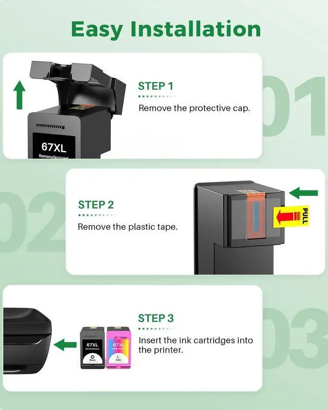 67XL Ink Use with DeskJet 2700 series: 2700 /2700E / 2710E / 2720E /2721E /2722 / 2722E / 2723E / 2724 / 2725 / 2732/2734E / 2742/ 2742E / 2752 / 2752E / 2755 / 2755E / 2855E