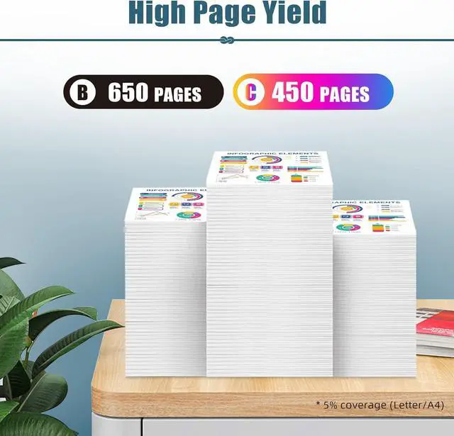 Page Yield: 650 pages per 65XL black ink cartridge and 450 pages per 65XL color ink cartridge.