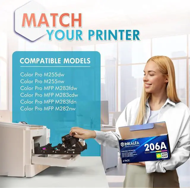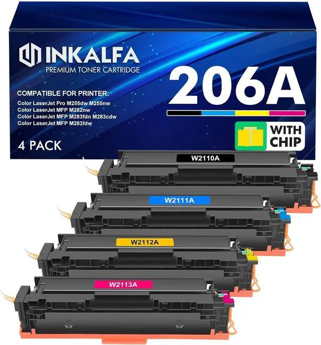 Superior quality: High-efficiency 206A with chips toner to get the clear text and vivid color printing. These 206A toner cartridges are alread installed with orginal chips, No need to transfer orginal 206A toner chip to them