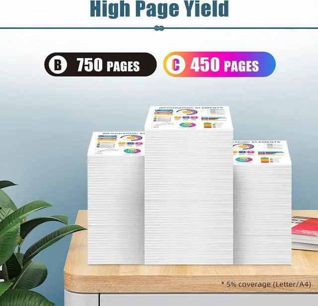 Page Yield: 750 pages per 63XL black ink cartridge and 450 pages per 63XL color ink cartridge.