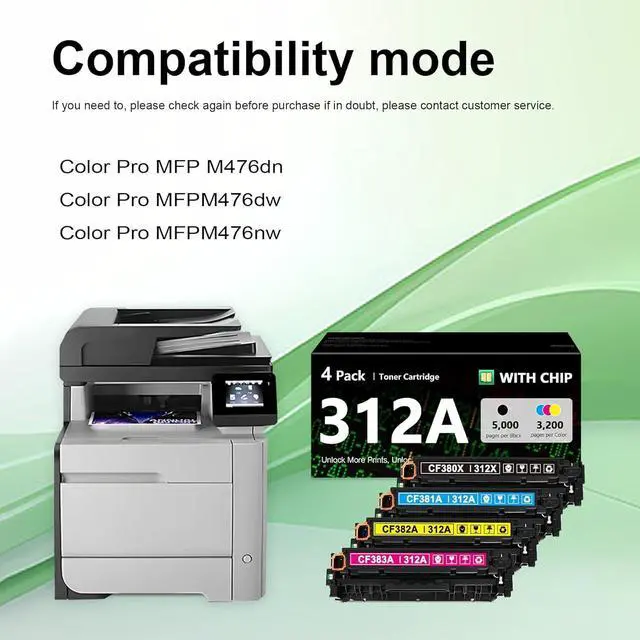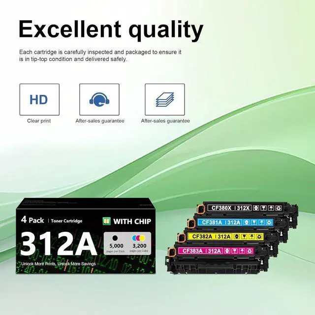 What's Included: This package includes 4-Pack 312A toner cartridges: 1 Black 312X, 1 Cyan 312A, 1 Magenta 312A, 1 Yellow 312A