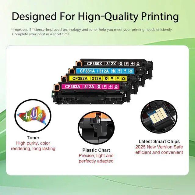 Reliable Performance: Formulated with premium toner powder, this 312A toner set produces crisp text and vibrant colors without fading, streaking, or leakagesolving the common issues found in low-quality alternatives