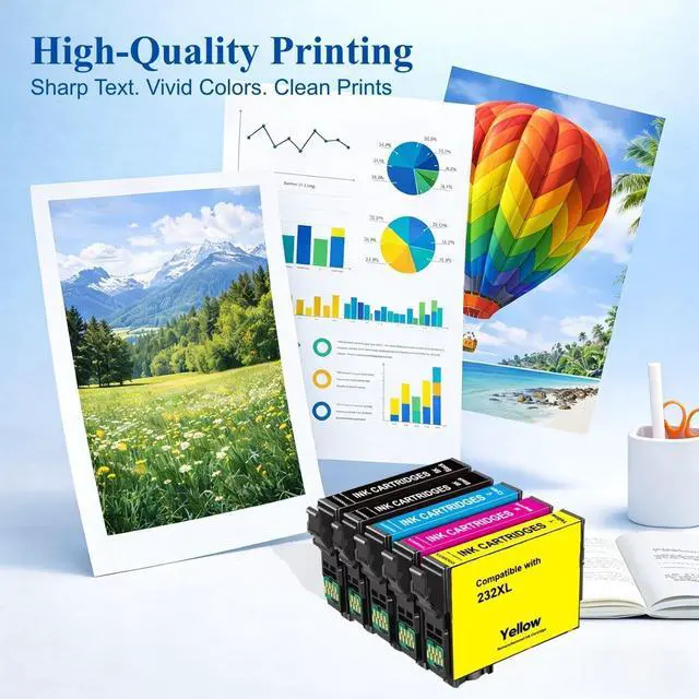 Excellent Performance: Compatible with Epson ink 232 ink cartridges deliver clear, vibrant print results with vivid images, producing sharp documents and colorful graphics for everyday printing