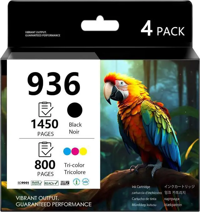 Package Contents: 4-Pack 936 ink cartridge combo: 1 Black + 1 Cyan + 1 Magenta + 1 Yellow