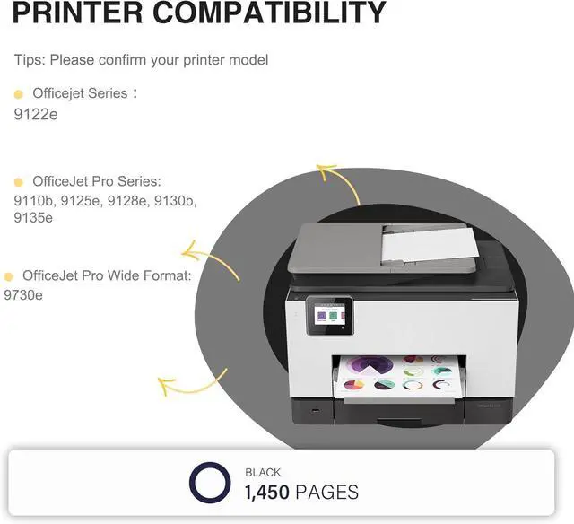 Works with HP Compatible Printers: OfficeJet Pro Series: 9110b, 9125e, 9128e, 9130b, 9135e; Officejet Series : 9122e; OfficeJet Pro Wide Format: 9730e
