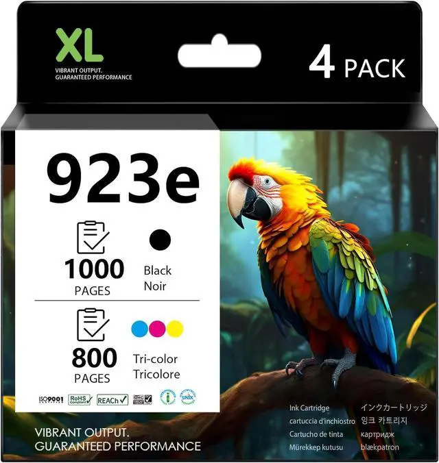 Package Contents: 4-Pack 923e ink cartridge combo: 1 Black + 1 Cyan + 1 Magenta + 1 Yellow