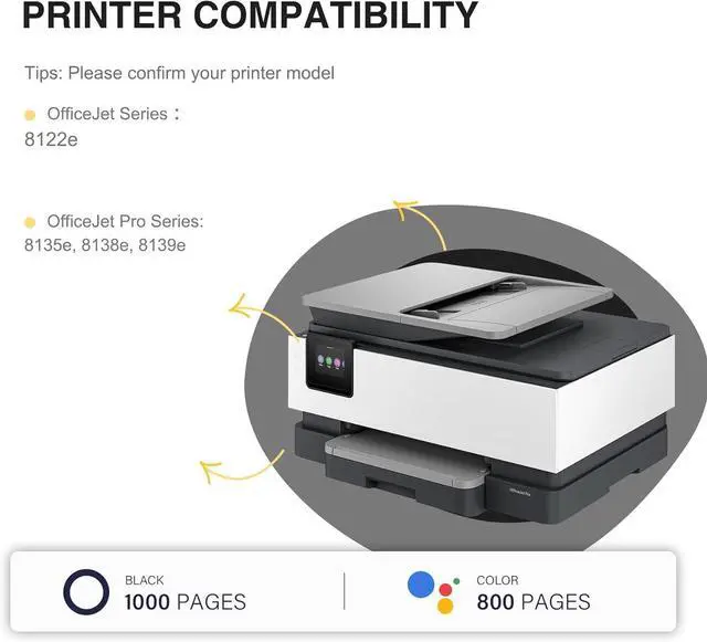 Works with HP Compatible Printers: OfficeJet Pro Series: Pro 8135e, 8138e, 8139e; OfficeJet Series: 8122e