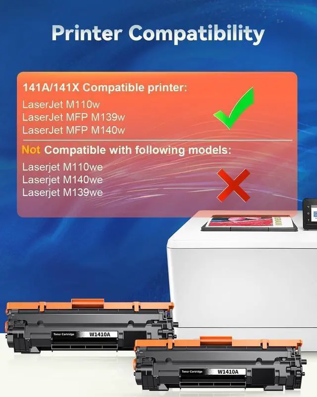 With chipWork with HP Laserjet M110w M140w M139w Printer, Not work with HP Laserjet M110we M140we M139we Printer