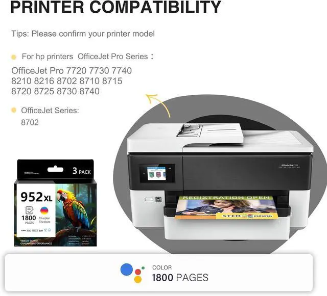 Works with HP Compatible Printers: OfficeJet Pro Series: 7720, 7730, 7740, 8210, 8216, 8702, 8710, 8715, 8720, 8725, 8730, 8740; OfficeJet Series: 8702