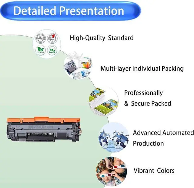 Superior Toner QualityFinely ground carbon powder delivers vibrant colors,ensuring uniform and fine particles,bold font printing,minimal toner consumption,extends the life of the printer