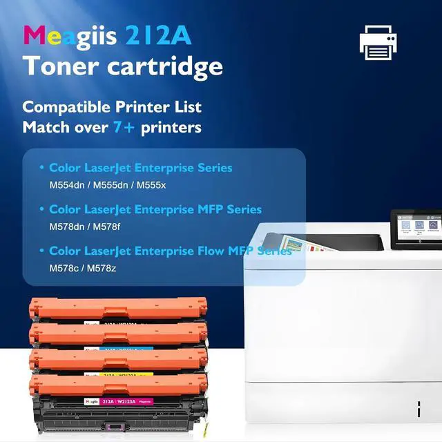 Printer Compatibility: These 212A Toner Cartridges are fully compatible for HP Color LaserJet Enterprise Flow MFP M578 Series M578c M578z, Color LaserJet Enterprise MFP M578 Series M578dn M578f, Color LaserJet Enterprise M554 M555 Series M554dn M555dn M555x Printer