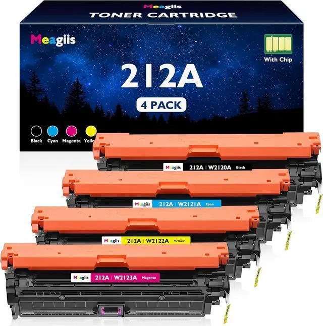 Package Contents: 4 Pack 212A Toner Cartridge Compatible for HP 212A Toner Cartridge: 1*212A Black Toner (W2120A), 1* 212A Cyan Toner (W2121A), 1* 212A Yellow Toner (W2122A), 1* 212A Magenta Toner (W2123A ), Standard Yield Version of 212X W2120X W2121X W2122X W2123X