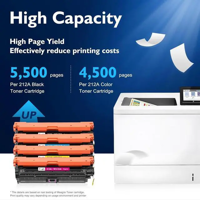 High Page Yield: Up to 5,500 pages for 212A black toner (W2120A) and 4,500 pages per 212A color toner (W2121A W2122A W2123A) at 5% coverage of Letter/A4